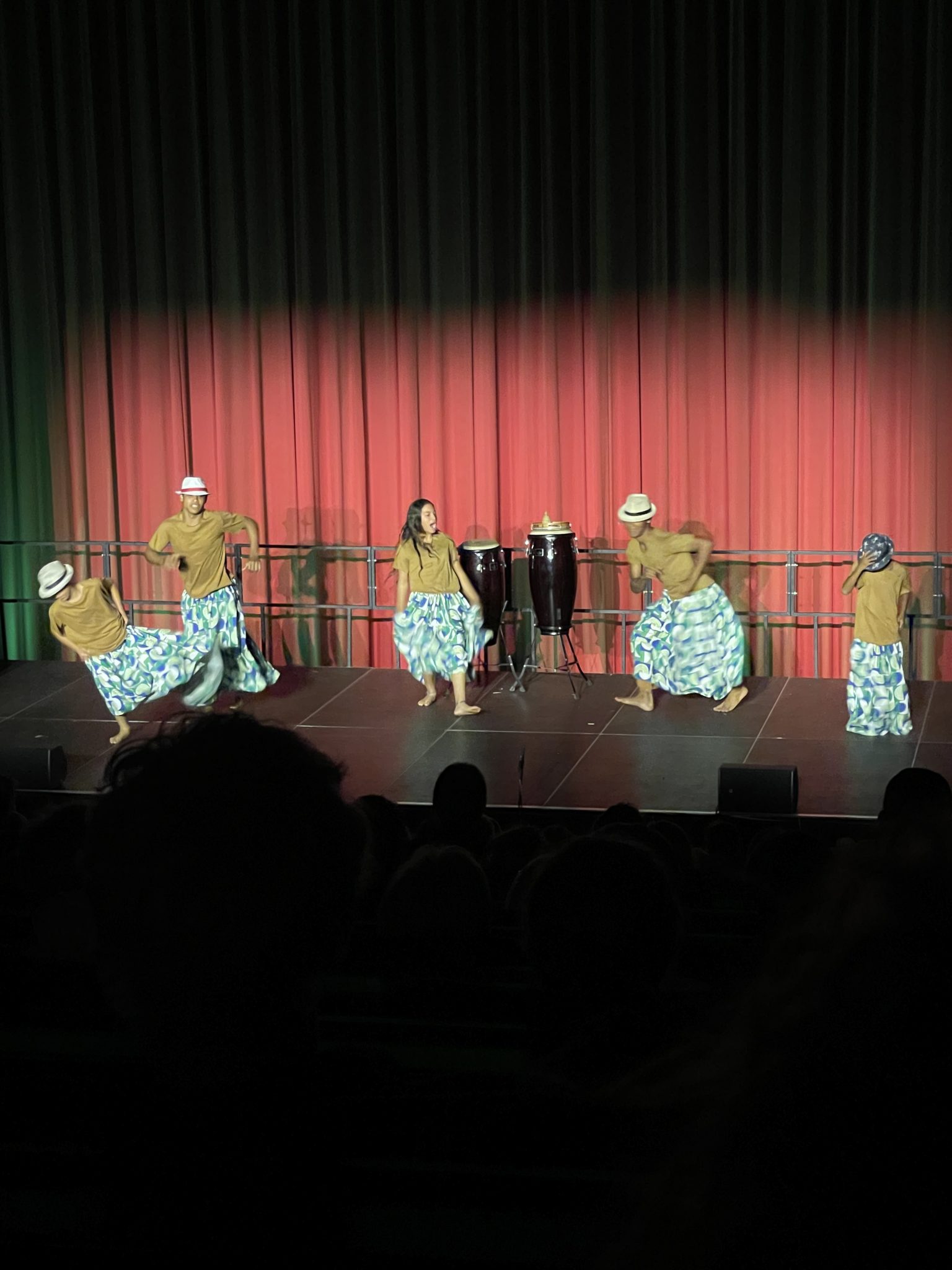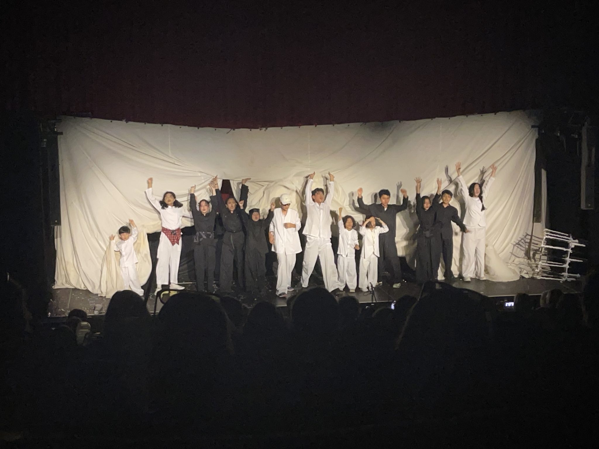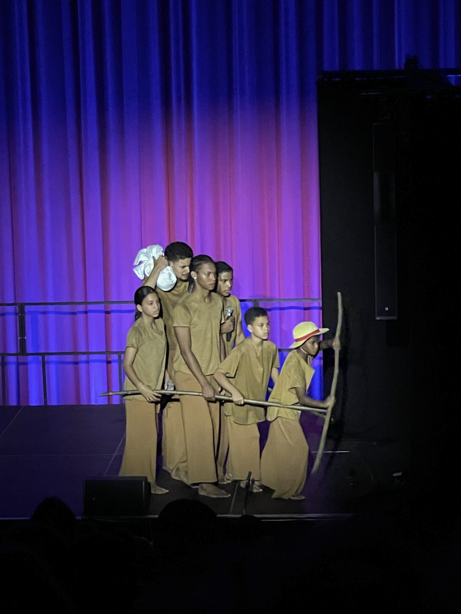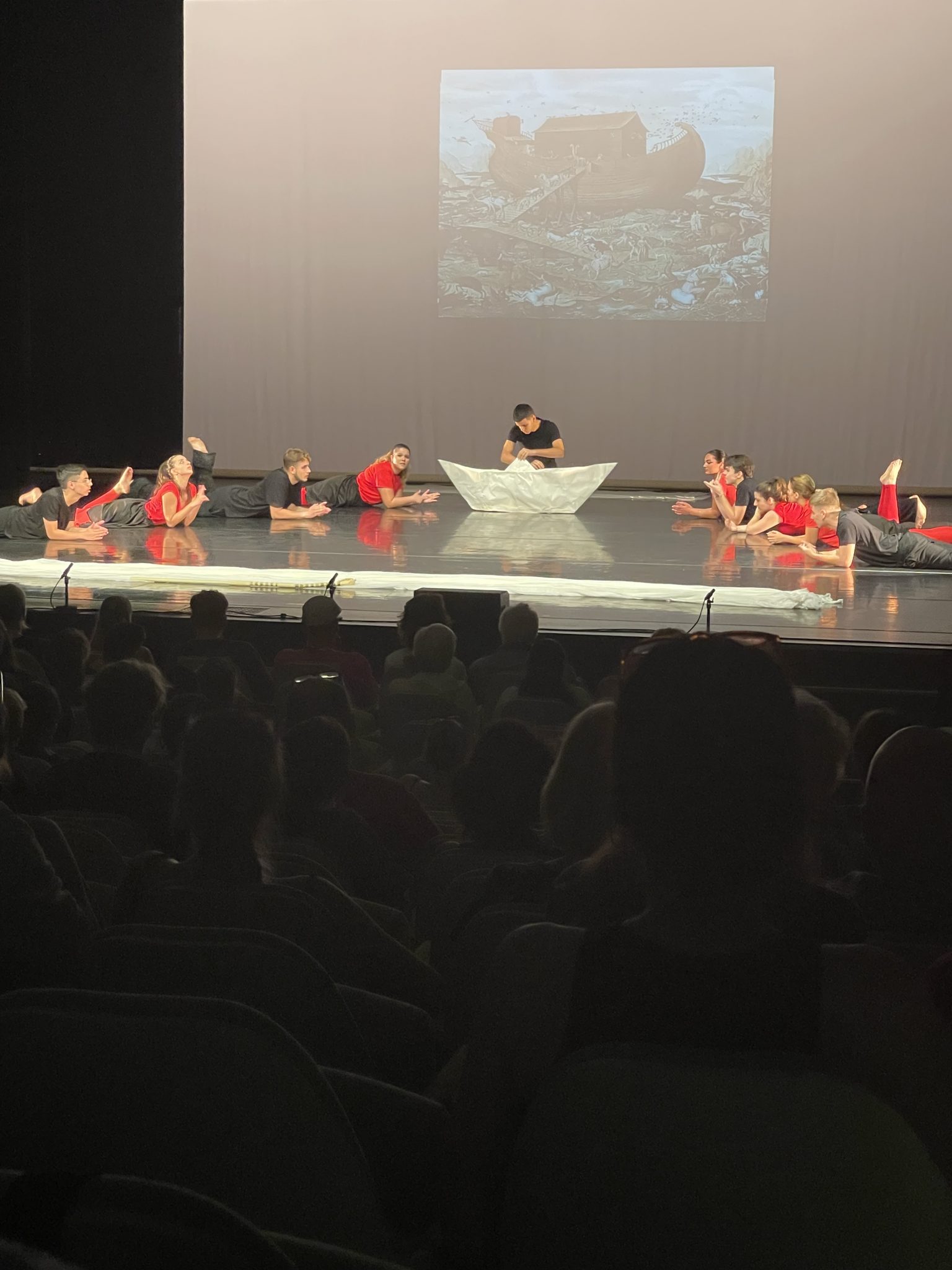 Im Festivalsong heißt es: „It’s about us, it’s about you and me. One world united, in peace we’ll be free.“ Die Utopie eines friedlichen Zusammenlebens, des gegenseitigen Respekts wird in vielen der hier gezeigten Performances thematisiert, kommt aber auch auf dem Festivalgelände zum Ausdruck. Ich mache einen Spaziergang durch den Festivalpark „Youtopia“, mit kleinen Länderpavillons, in denen die Gruppen ihre Heimat vorstellen. Hier werden auch kleine Souvenirs verkauft oder verschenkt: bunte Taschen und Trommeln aus Uganda, besondere Postkarten aus Indonesien, Give-aways aus aller Welt. Hier ist man ganz nah an den jungen Darsteller*innen und kommt schnell ins Gespräch, z. B. darüber, warum die indonesische Gruppe nicht an der Eröffnung teilnehmen konnte. Der reguläre Flug konnte nicht starten, weil ein Teil des Luftraumes aufgrund der russischen Angriffe in der Ukraine vorübergehend gesperrt und eine Ausweichroute gebucht werden musste, erfahre ich. Ein beherztes Organisationsteam auf beiden Seiten hat es mit einigem Aufwand geschafft, dass ein Teil der Gruppe – mit leichter Verspätung – doch noch anreisen und performen konnte. Theaterleute können eben vor allem eines richtig gut: improvisieren!