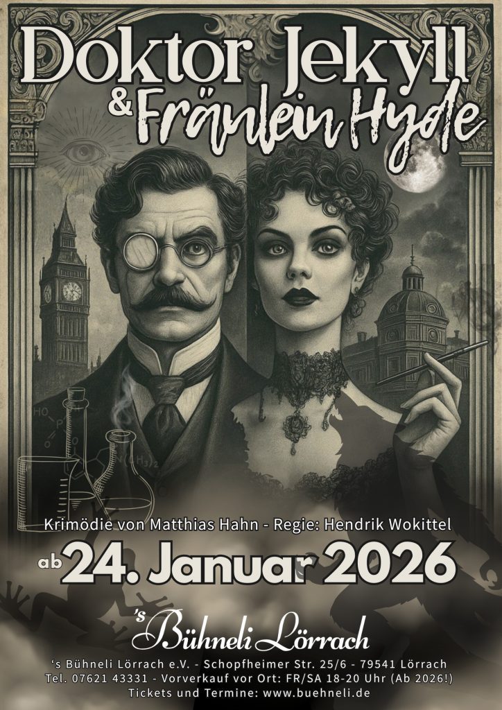 Buehneli-Plakat Dr. Jekyll und Frl. Hyde 2026. // Plakat: Katja Schmuck-Bachmann