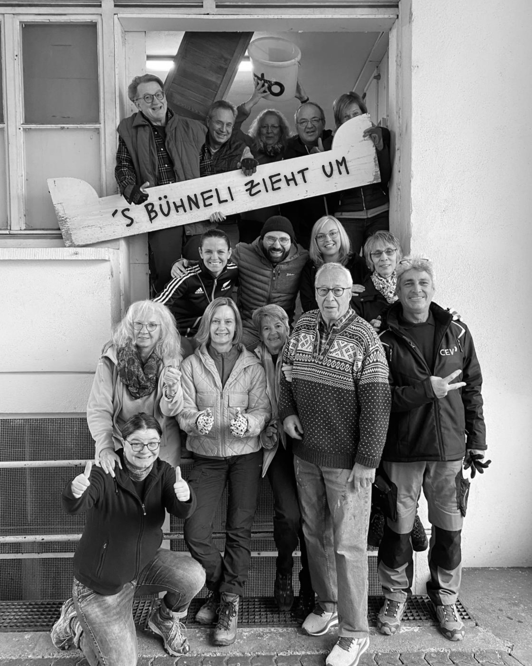Doch statt zu resignieren, schaltete unser Team in den Krisenmodus, im positiven Sinne. Wir sahen uns nicht als Opfer der Umstände, sondern als gesamtes Ensemble in der größten praktischen Inszenierung unserer Vereinsgeschichte. Mit 37 Mitgliedern unterschiedlichster Altersstufen ist ’s Bühneli eine kleine Familie, die es gewohnt ist, gemeinsam auf ein Ziel hinzuarbeiten. Ob es das Gelingen einer einzigartigen Spielsaison ist oder eben die Rettung des gesamten Vereins.
