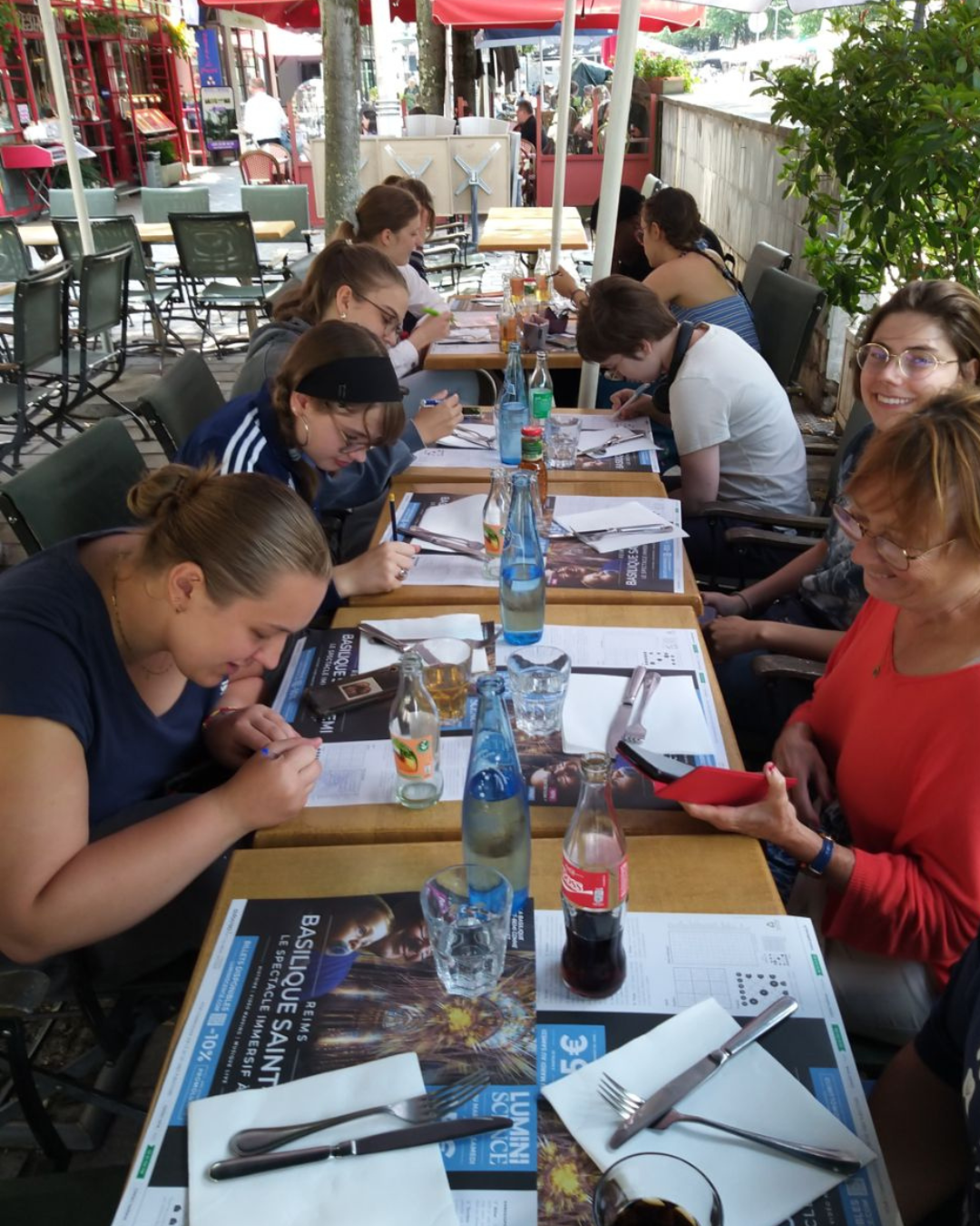 Neben den vielen Theaterstunden kam auch das Erkunden der Stadt nicht zu kurz. Der Bürgermeister gewährte Einblick in das Rathaus, wir besuchten ein Lichtspektakel und die Stadt Reims erkundeten wir in Teams ganz ohne technische Hilfsmittel. Das Beisammensein während der ausgiebigen Mahlzeiten half dabei, sich besser kennenzulernen.